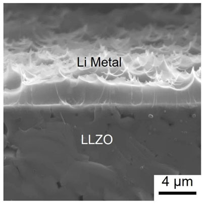 Cross-sectional Li–LLZO interfacial morphologies obtained by ultrasonic welding in seconds at room temperature. ©Eric Jianfeng Cheng et al.