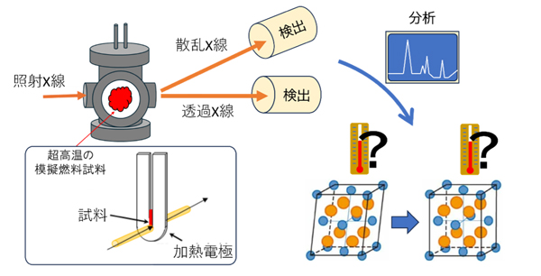- 研究チームは、3000℃を超えるような超高温物質に対してSPring-8の強力なX線を照射し、その構造変化をリアルタイムで観察できる新しい技術を開発しました。この技術により、燃料や被覆管が溶ける瞬間から、化学反応を経て固まるまでの一連の過程を追跡することが可能になりました。