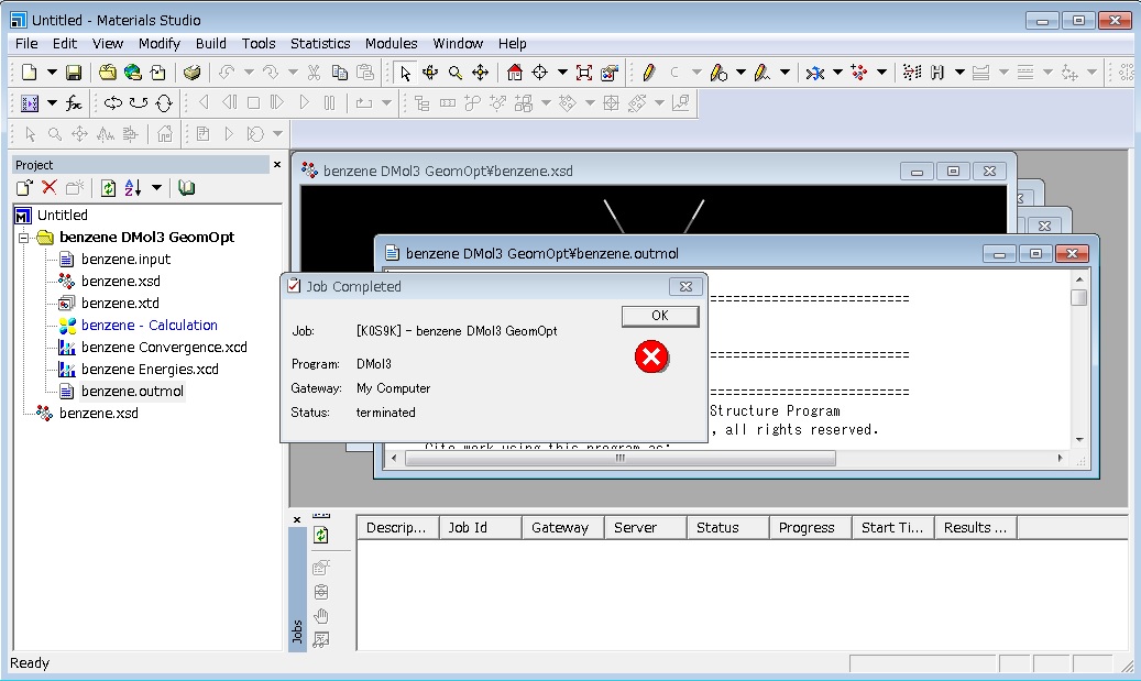 See [Jobs] pane at the lower right of the screen on Materials Studio.