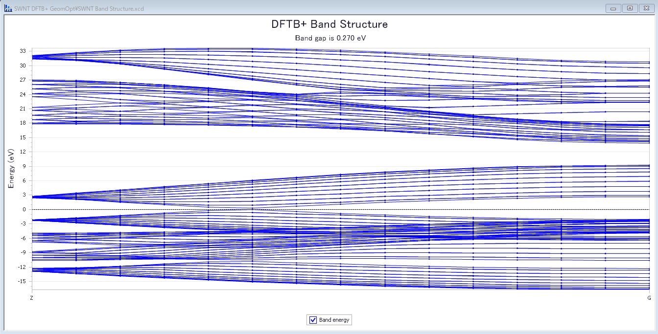 出力ファイルを PC に転送しておきます。その際、適切なファイルモードで転送する必要があります。 file コマンドを実行した結果が text のものはテキストモード、data のものはバイナリモードで転送します。 メニューバーの「Modules」から「DFTB+」、「Analysis」を選択します。