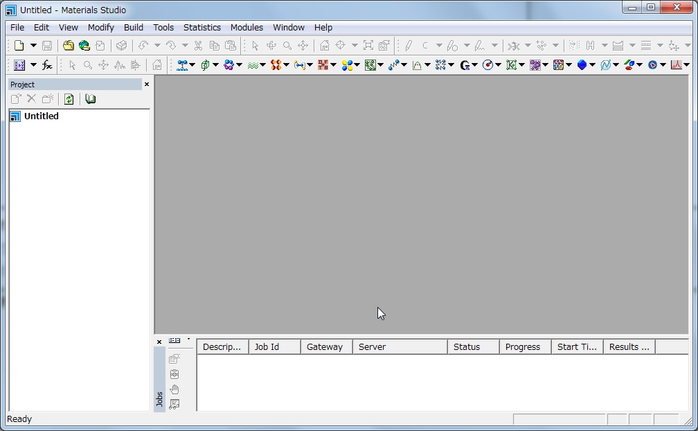 ジョブの状態は、Materials Studio の画面右下の「Jobs」ペインで確認できます。